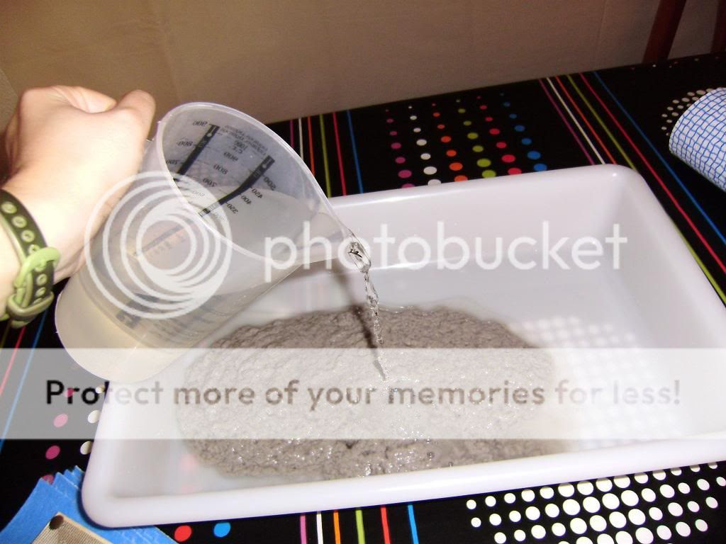 Bueno, después de la breve pausa para el bricolaje, proseguimos con nuestro papel (nunca mejor dicho). Removemos el agua con la pulpa para que esté toda en suspensión e introducimos de esta forma el tamiz en el agua.